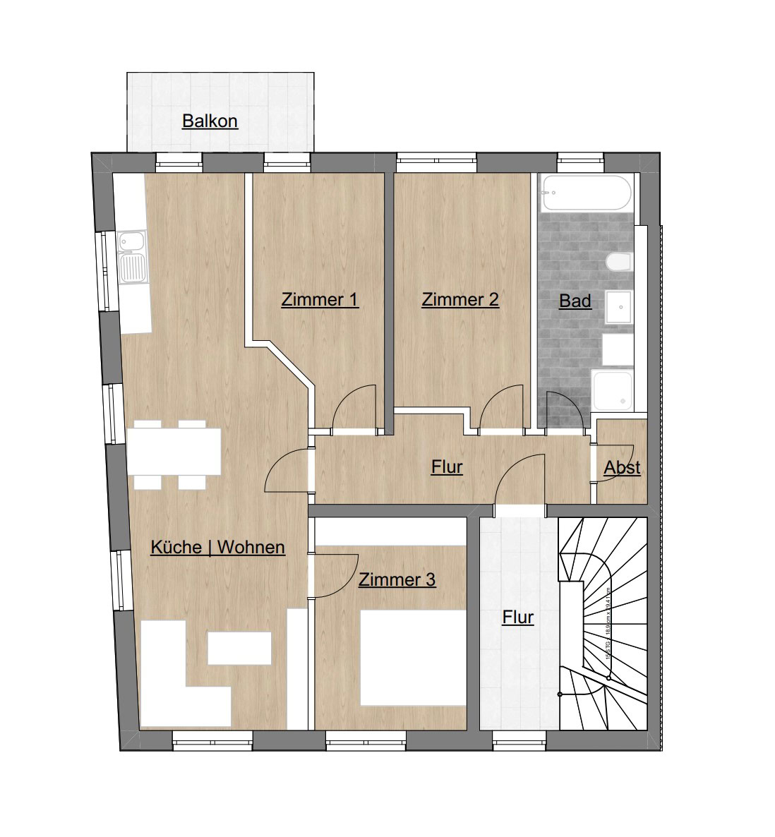 Im Mittelpunkt steht der helle, offene Wohn- und Essbereich, der in jeder Einheit einen großzügigen und einladenden Raum für gemeinsame Momente schafft. Jede Wohnung verfügt über einen Balkon, der direkt an den Wohnbereich anschließt und zum Entspannen im Freien einlädt. Für ein angenehmes Wohnklima sorgt die in allen Räumen integrierte Fußbodenheizung, die sanfte Wärme verteilt.
